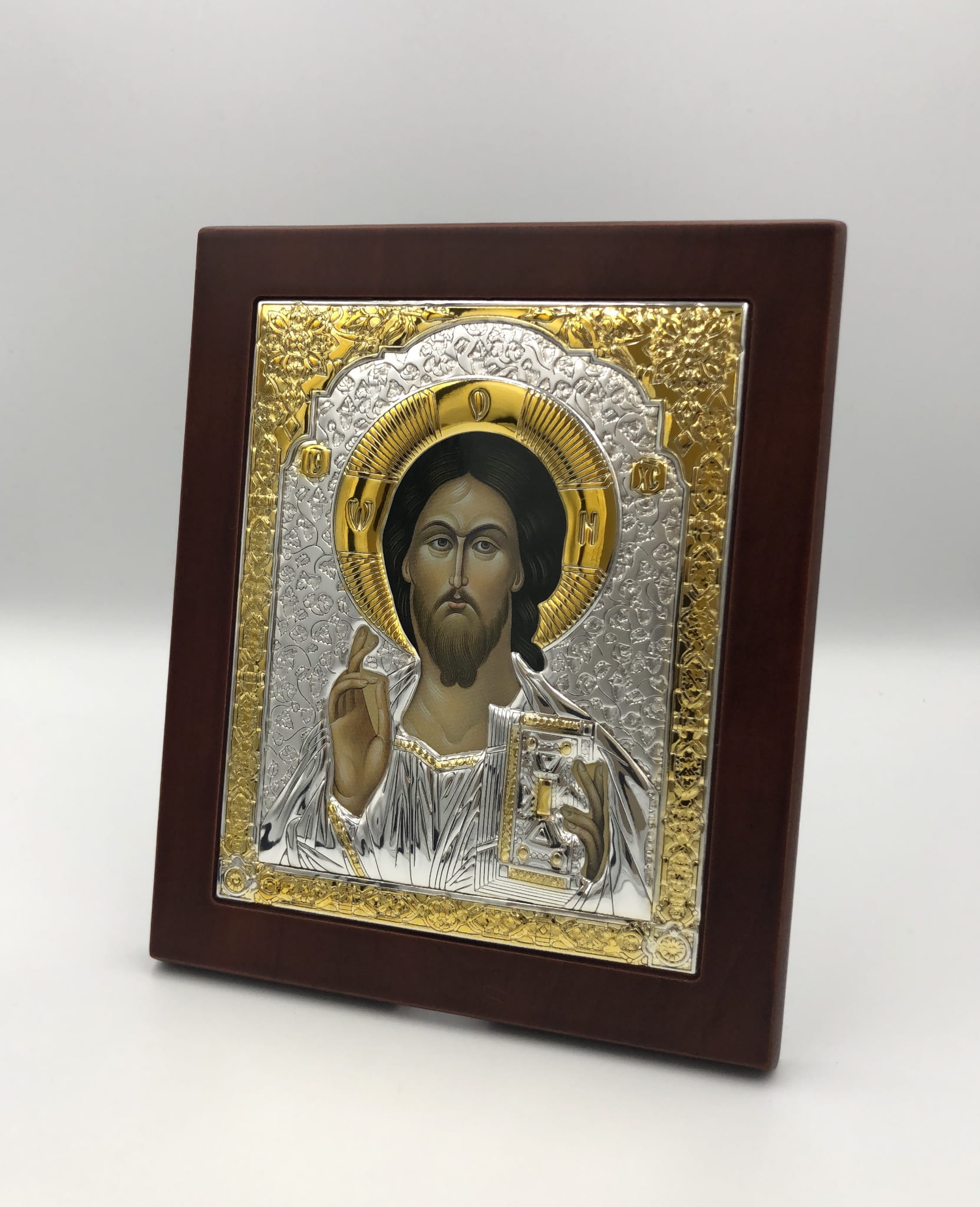 Ikona wykonana na brązowej drewnianej desce z wgłębieniem tzw. kowczegiem . Koszulka ikony zawiera warstwę czystego srebra o próbie 999,95 dodatkowo ma częściowe złocenie 24k złotem. Pod koszulką znajduje się cały wizerunek obraz ikony. Każda ikona jest zapakowana w eleganckie pudełko.
