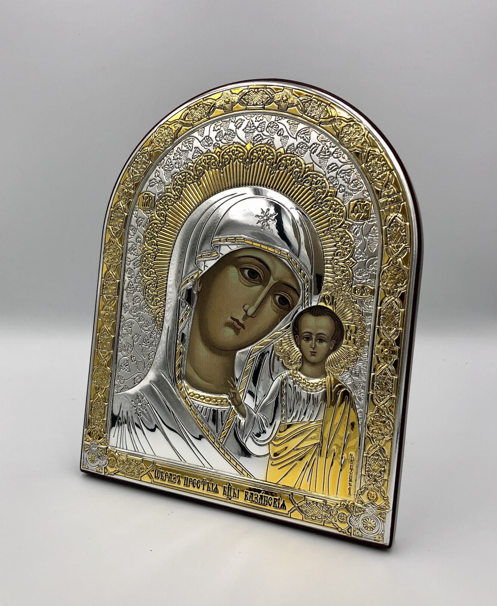 Ikona wykonana na drewnianej desce. Koszulka ikony zawiera warstwę czystego srebra o próbie 999,95 dodatkowo ma częściowe złocenie 24k złotem. Pod koszulką znajduje się cały wizerunek obraz ikony. Każda ikona jest zapakowana w eleganckie pudełko.