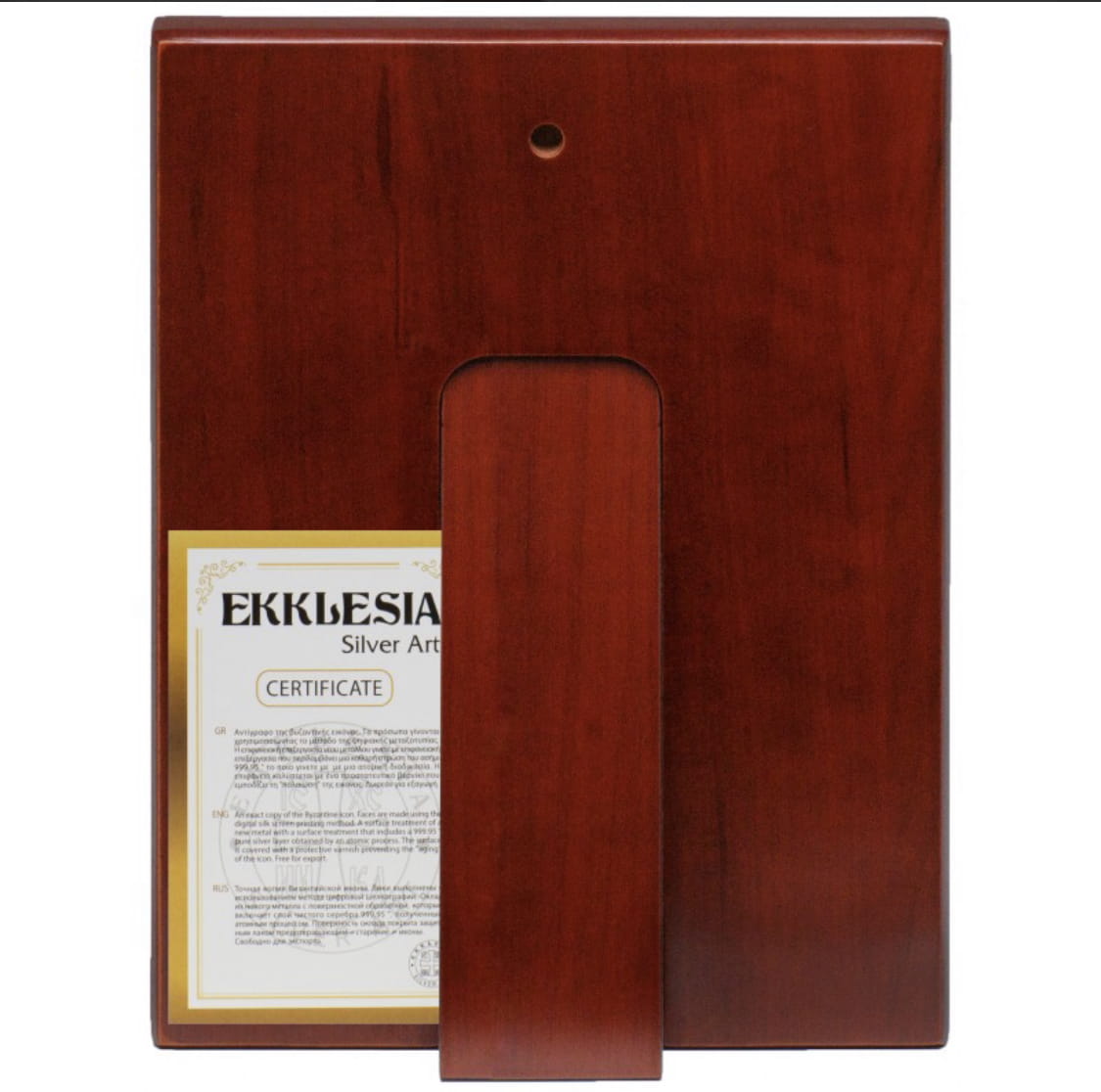 Ikona wykonana na brązowej drewnianej desce. Koszulka ikony zawiera warstwę czystego srebra o próbie 999,95 dodatkowo ma częściowe złocenie 24k złotem. Pod koszulką znajduje się cały wizerunek obraz ikony. Każda ikona jest zapakowana w eleganckie pudełko.