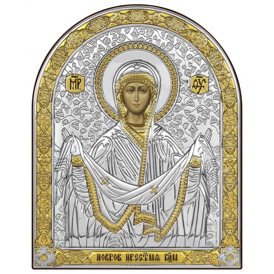 Ikona wykonana na brązowej drewnianej desce. Koszulka ikony zawiera warstwę czystego srebra o próbie 999,95 dodatkowo ma częściowe złocenie 24k złotem. Pod koszulką znajduje się cały wizerunek obraz ikony. Każda ikona jest zapakowana w eleganckie pudełko.
