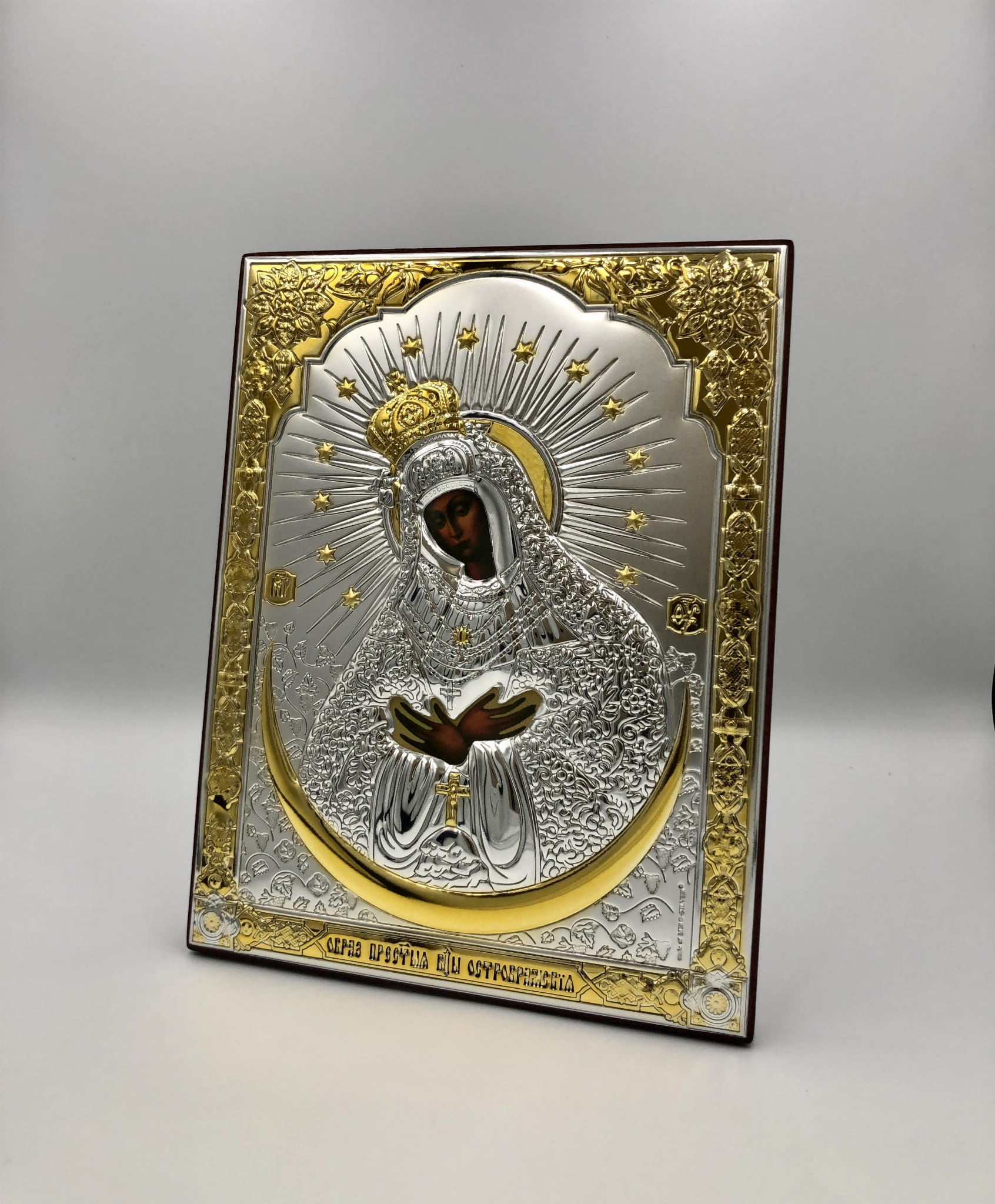 Ikona wykonana na brązowej drewnianej desce. Koszulka ikony zawiera warstwę czystego srebra o próbie 999,95 dodatkowo ma częściowe złocenie 24k złotem. Pod koszulką znajduje się cały wizerunek obraz ikony. Każda ikona jest zapakowana w eleganckie pudełko.