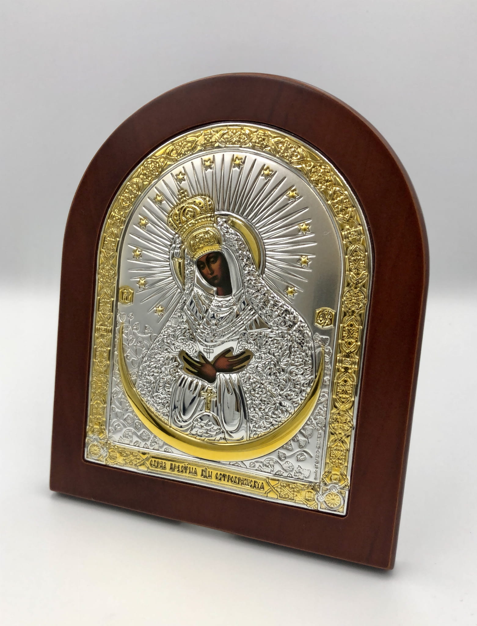 Ikona wykonana na brązowej drewnianej desce z wgłębieniem tzw. kowczegiem . Koszulka ikony zawiera warstwę czystego srebra o próbie 999,95 dodatkowo ma częściowe złocenie 24k złotem. Pod koszulką znajduje się cały wizerunek obraz ikony. Każda ikona jest zapakowana w eleganckie pudełko.